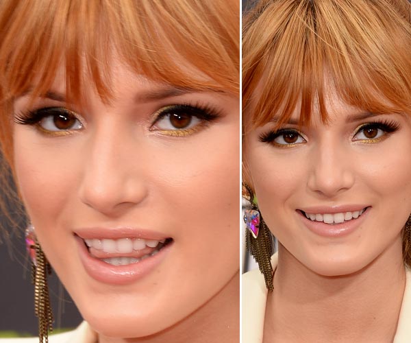 Outra linda é a Bella Thorne, que optou por um make maravilhoso com amarelo ouro metálico, marrom, delineado e mega postiços. Nos lábios gloss nude (celebs amam gloss nude, né?) e nas maçãs blush caramelo com textura cremosa.