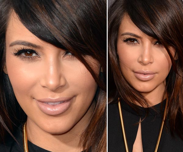Kim Kardashian veio mais light apenas com um pouquinho de sombra marrom e delineado (e claro o cílios postiços, mas isso é tão dela que já acho que ela acorda com eles kkkk). Nos lábios nude rosinha e pele com aquela cobertura power de sempre!