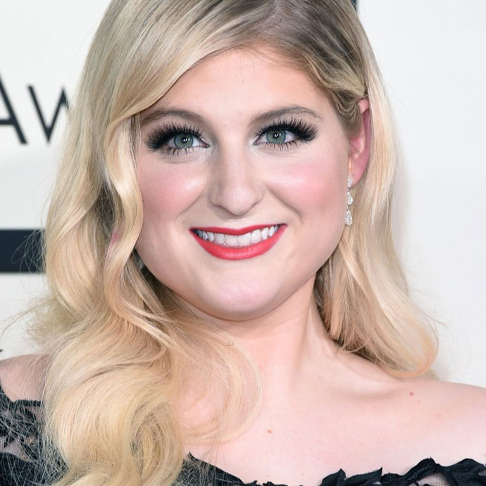 Meghan Trainor=) Apostou em muitos cílios e bocão vermelho! Super combinou com ela.